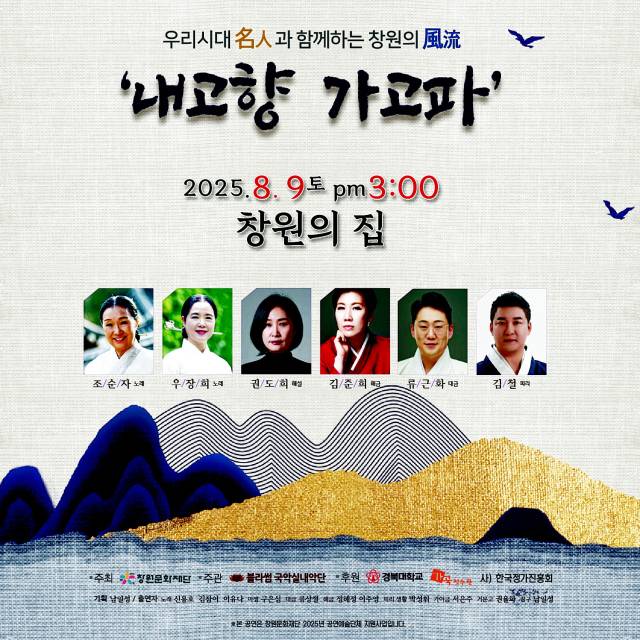 창원문화재단의 '2025 공연예술단체지원사업' 선정작인 블라썸국악실내악단의 '내고향 가고파'는 우리 시대 명인들의 전통 가곡 무대로 창원의 풍류를 전한다.