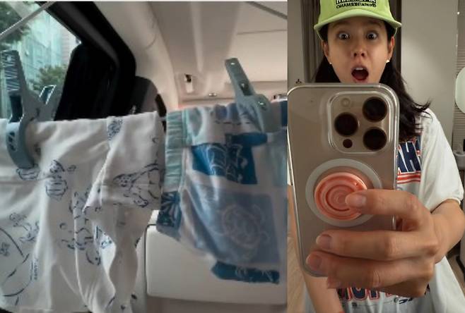 손예진은 5일 자신의 부계정을 통해 "팬티가 마를 새가 없이 놀러다닌 방학. 드디어 끝… 나는 오늘부터 바쁜 스케줄 시작인데 왜… 마음은 평화로운"이라는 글과 함께 한 장의 사진을 게재했다. 공개된 사진에는 차량 내부에 널어놓은 아이의 팬티가 담겨 있어 보는 이들의 미소를 자아냈다.