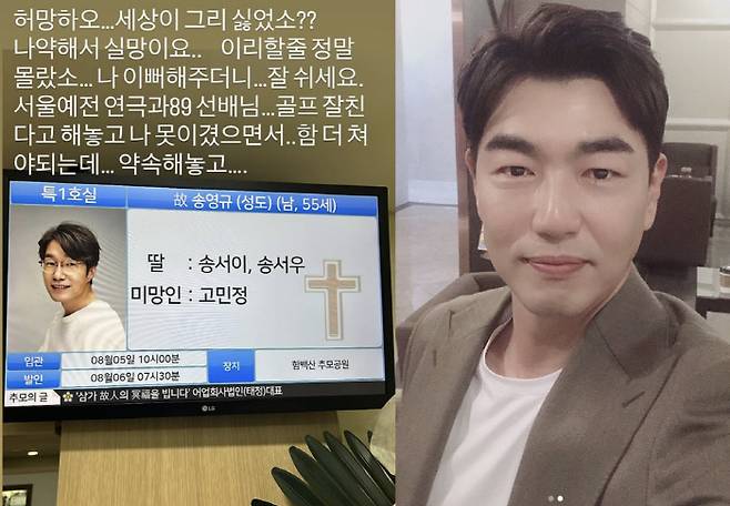 앞서 배우 장혁진도 지난 4일 자신의 계정에 故 송영규 사진을 게시하며 "형 많이 힘들고 무섭고 걱정됐겠다. 전화라도 해볼걸. 세상 참..잘가.."이라고 그리움을 표현했다.