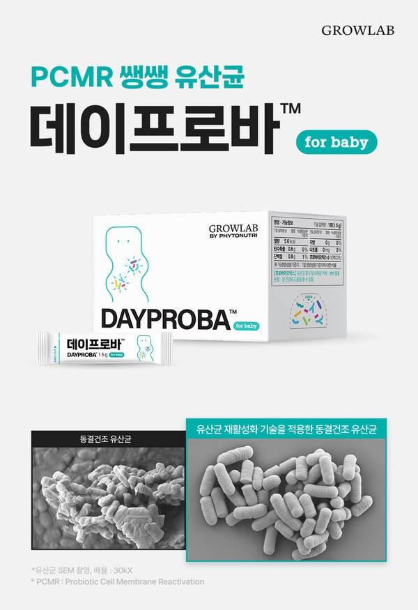 성장영양 베이비&키즈 전문 연구 랩 브랜드 파이토뉴트리 그로우랩이 약 2년에 걸친 연구 끝에 유산균 세포막 활성화 기술을 세계 최초로 아기 유산균에 적용한 '데이프로바 베이비'를 출시했다.