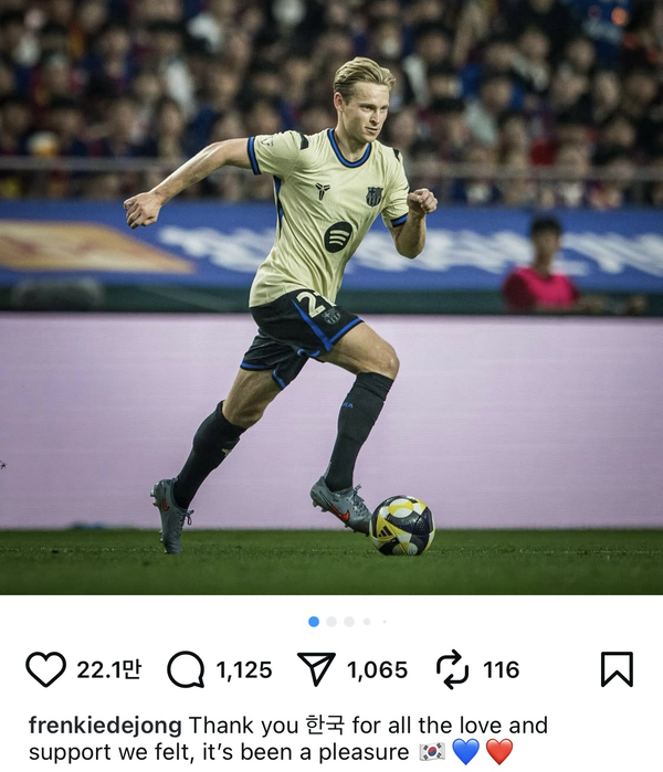 한편 더 용은 최근 바르셀로나와 4년 재계약을 체결했다. 한국 팬들은 바르셀로나에서 활약할 더 용을 계속해서 지켜볼 수 있을 전망이다.