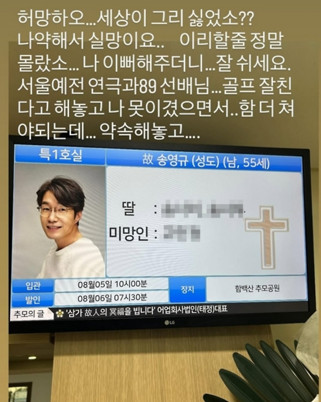 배우 고(故) 송영규가 갑작스레 세상을 떠난 가운데 동료 배우들이 잇달아 애도를 표하고 있다.