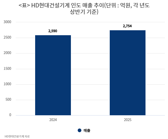 인도에서의 실적도 고공행진하고 있다. 올해 상반기 HD현대건설기계 인도 매출은 2754억원으로 전년(2590억원) 동기 대비 6.3% 늘었다.