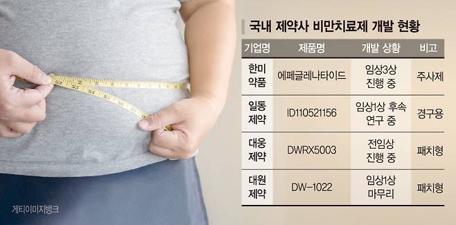 5일 제약·바이오업계에 따르면 글로벌 제약사들이 앞다퉈 비만치료제 개발 경쟁을 벌이는 가운데 국내 제약사들도 편의성과 효능을 강화한 관련제품 개발에 박차를 가하고 있다.