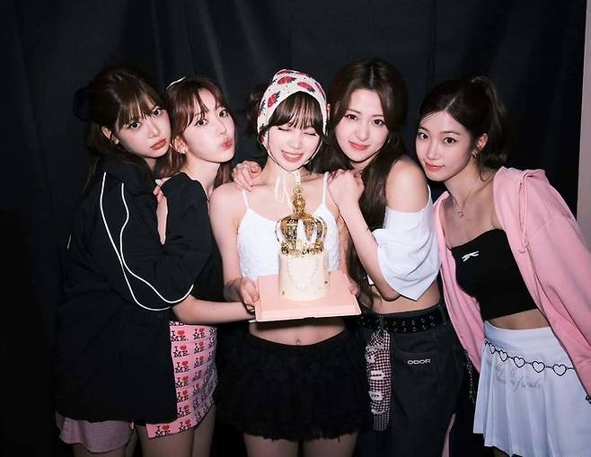 마지막 사진에서는 김채원과 동일 그룹 멤버들이 다채로운 스타일로 포즈를 취하고 있다. 김채원은 왕관 케이크를 들고 중심에서 포즈를 취하며 눈길을 끈다.
