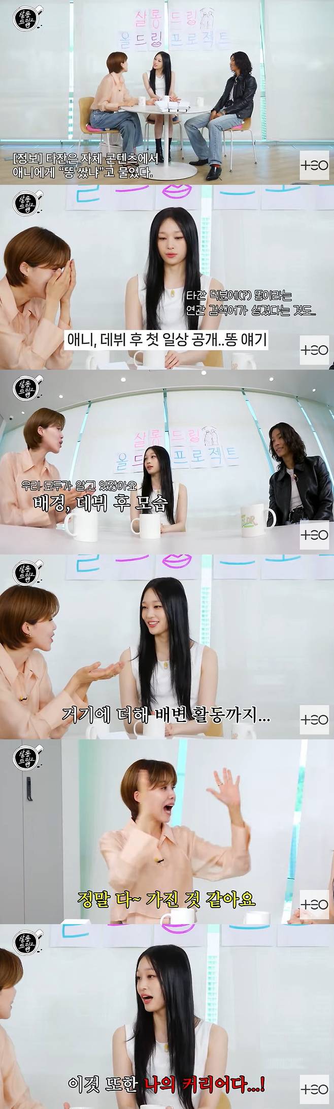 애니는 "(데뷔 전에는) 저한테 이렇게까지 막 놀리고, 똥 쌌냐고 물어보고"라며 타잔이 자체 콘텐츠에서 애니에게 배변 활동에 대해 물었던 것을 언급했다.