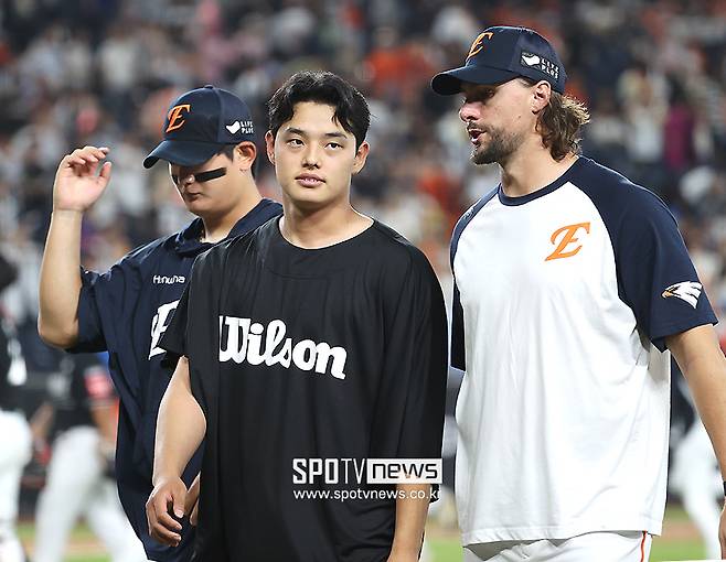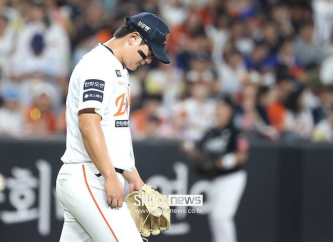 이후 교체된 김서현은 어두운 표정으로 더그아웃을 향했고, 포수 최재훈과 투구에 대해 복기하며 대화를 나누기도 했다.