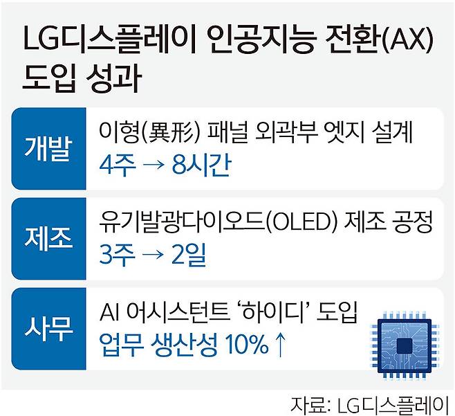 LG디스플레이가 사업 전 영역 전반에 인공지능(AI)을 적용하는 AI 전환(AX)을 확산하며 '생산성 혁신'에 나선다.