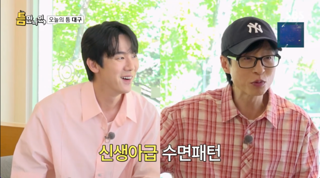 유연석이 "9시 30분에 어떻게 자냐"며 놀라움을 감추지 못하자, 유재석은 "새벽 4시 40분에 일어났다"고 말하며 일찍 잠든 이유를 설명했다. 이 말을 들은 유연석은 유재석을 '신생아'에 비유하며 웃음을 터뜨렸다.
