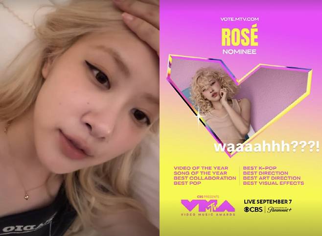 로제는 자신의 계정에 "방금 VMA 후보에 8개나 올랐다는 소식을 들었다. 정말 충격적이다. 뭐라고 말해야 할지 모르겠다. 정신 없는 날이다. 정말 말도 안된다. 정말 미칠 것 같다. 무슨 일일까"라고 벅찬 소감을 전했다.