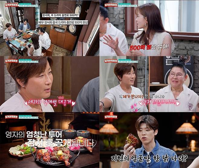 이날은 화끈한 먹방만큼 화끈한 입담도 폭발한다. 아역 스타 출신으로 드라마 '인어 아가씨'로 인해 중국에 진출, 1세대 한류스타로 활약한 장서희는 중국 활동 당시 드라마 출연료 500억 썰에 대한 진실을 밝혀 모두를 놀라게 한다. 장서희는 "500억은 맞지만, 출연료가 아닌 드라마 총제작비였다"라며 부풀려진 루머를 해명해 관심을 집중시킨다.