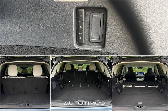 2열 시트 어깨 부분에 버튼을 한 번 누르면 원터치로 폴딩이 되며 3열을 들어갈 수 있는 공간이 나온다. 솔직히 3열은 아주 여유롭다고 할 수는 없다. 시트 면적은 꽤 좋은데 무릎 공간이 잘 안 나오기 때문이다. 그나마 큼직한 전용 유리창과 파노라마 선루프 덕분에 개방감은 우수하다. 또 전용 컵홀더와 송풍구, USB 충전 단자 등 필요한 편의 품목도 잘 위치 한다. 평소에는 시트를 접고 트렁크 공간으로 활용하면서 필요한 순간에 잠깐 단거리 이동을 할 때 유용할 듯하다.