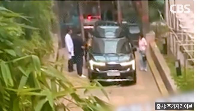 ◇ 김현정> 지금 저희가 유튜브와 레인보우로 낯선 영상 하나를 보여드리고 있는데 이게 카니발인가요? 까만 SUV에 하얀 셔츠 입은 여성이 걸어와서 올라타는 이 장면, 뭐예요?