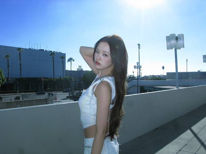 야외 자연광 속 안유진은 흰 민소매 크롭탑과 팬츠의 조합으로 시원한 서머룩을 선보였다. 바람과 햇살 속에서 돋보이는 풍성한 롱 헤어는 그의 분위기를 한층 더 성숙하게 만든 포인트다.