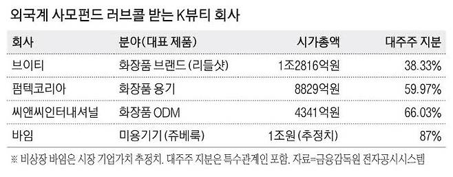 K뷰티가 폭발적인 성장세를 보이자 외국계 사모펀드(PEF)의 러브콜이 쏟아지고 있다.