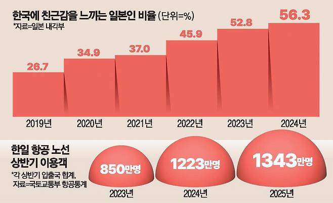 한일 사이 우호감정도 고조