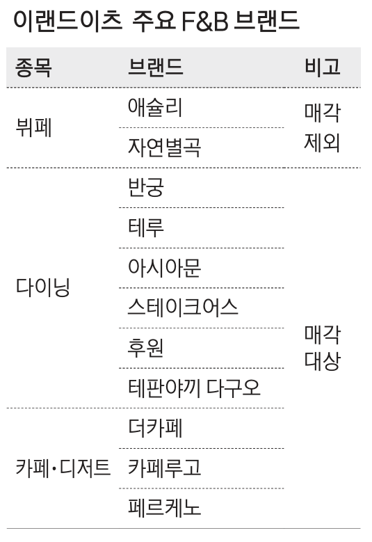 이랜드의 이 같은 행보는 비핵심 F&B 사업을 정리하고 핵심 브랜드에 역량을 집중하려는 의도로 해석된다.