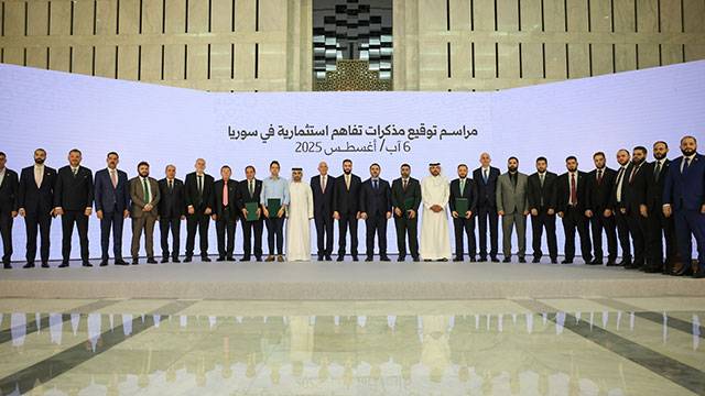 아메드 알샤라 시리아 임시대통령은 이날 수도 다마스쿠스에서 열린 행사에서 여러 기업체와 12개 주요 전략 프로젝트에 대한 투자 양해각서(MOU)에 서명했습니다.