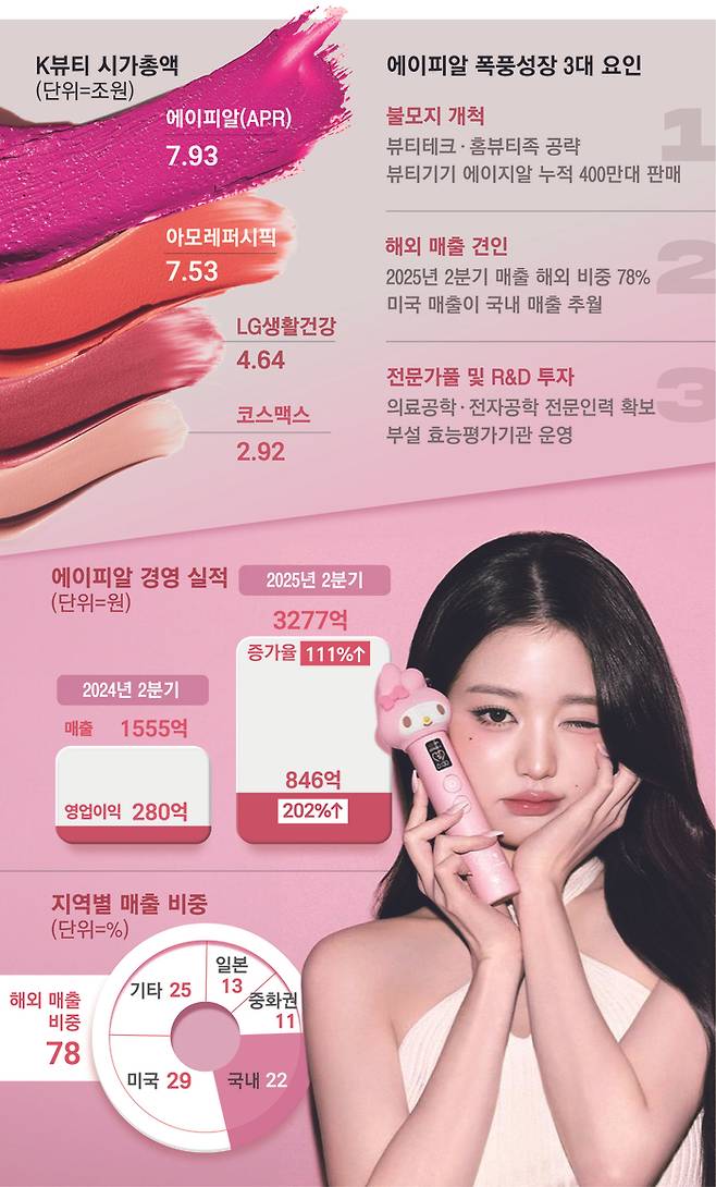 6일 업계 전문가들에 따르면 에이피알의 폭발적 성장 비결은 불모지 개척·해외 진출 성공·강력한 연구개발(R&D) 경쟁력 등 세 가지로 요약된다.