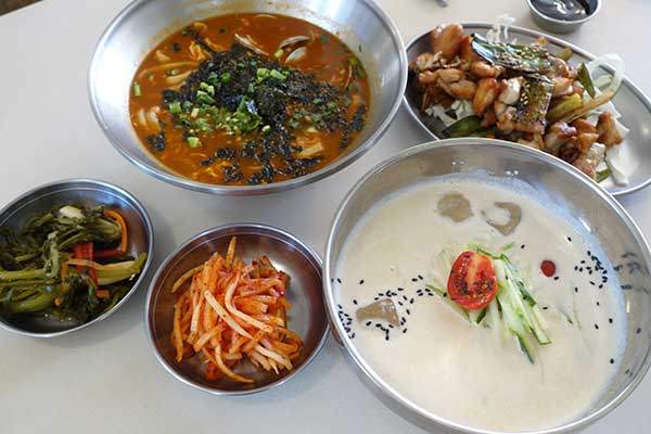 시원하고 얼큰한 국물이 일품. 지역주민들과 관광객들 모두에게 인기가 많은 동네 맛집이다. 파와 함께 구워져 나오는 닭구이는 장칼국수와 정말 잘 어울린다. 주문하지 않으면 후회할 것.