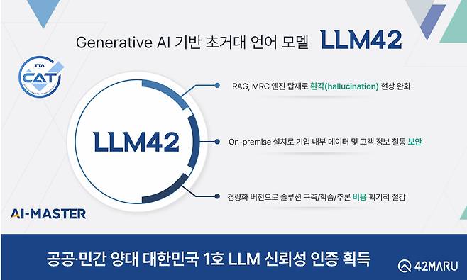 포티투마루는 신뢰도 높은 LLM으로 기술적 차별화를 했다. 자체 개발한 'LLM42'는 한국어 환경에 최적화해 경량화한 LLM으로 낮은 비용 구조와 높은 보안성, 산업 현장 적용성까지 두루 갖춘 것이 특징이다.
