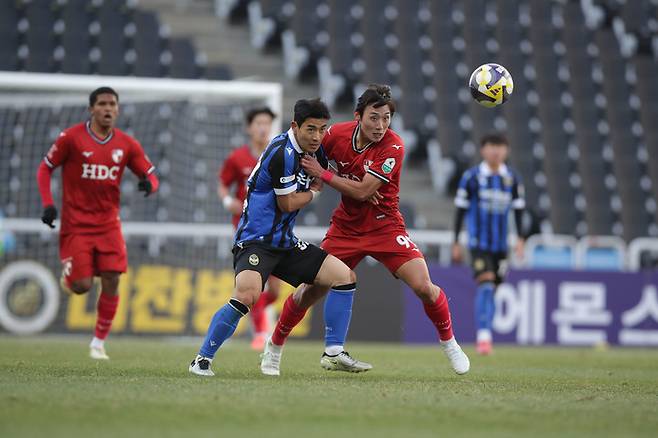 이에 맞서는 인천은 최근 4경기 연속 무패 행진(3승 1무)을 달리며 선두 자리를 지키고 있다. 다만 직전 23라운드 서울 이랜드 FC전은 아쉬움이 컸다. 홈팀의 기세에 밀리며 이렇다 할 기회조차 잡지 못했기 때문이다. 인천은 이날 경기에서 슈팅 2개만을 기록했을 정도로 고전했다. 최근 새로운 공격 옵션으로 거듭난 신진호의 제로톱 카드도 효과를 보지 못했다.