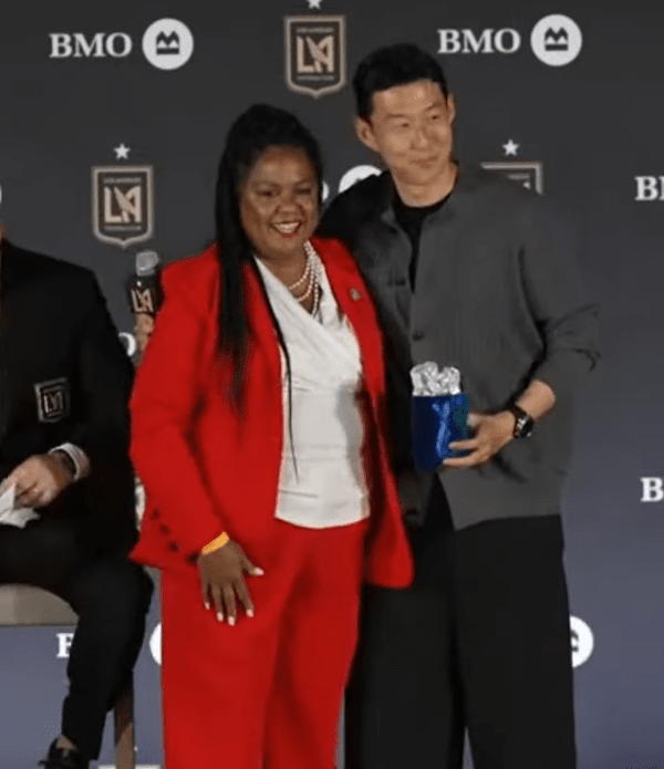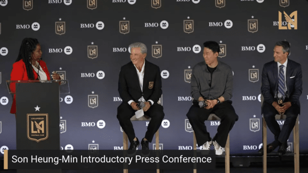 손흥민은 7일 미국 로스앤젤레스에 위치한 BMO 스타디움에서 입단 기자회견을 가졌다. 이날 손흥민의 LA 입성을 축하하기 위해 수많은 팬이 참가한 것은 물론 김영완 LA 대한민국 총영사, 데이브 민 연방 하원의원, 캐런 배스 LA 시장 등 고위급 인사들도 현장을 찾았다.