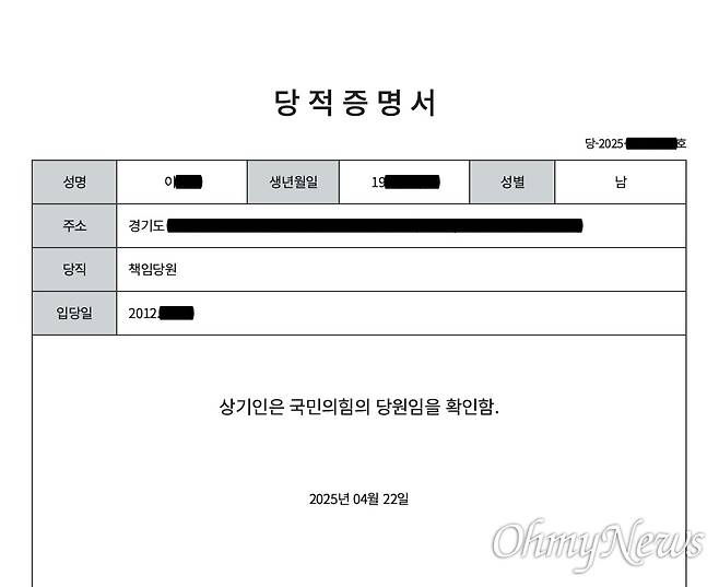| ▲ 신전지 전직 고위 관계자인 A씨는 자신이 2012년경 신천지에 의해 국민의힘 계열 정당(당시 새누리당) 당원으로 가입했다고 밝혔다. |