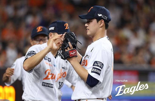당초 2일 광주 KIA전에 나설 예정이었던 문동주는 2일과 3일 경기가 잇따라 비로 취소되면서 지난달 27일 대전 SSG전 이후 8일 휴식 후 등판, 최고투를 펼쳤다. 특유의 빠른 공과 커브와 슬라이더, 포크볼을 섞어 92구로 7이닝을 막았다.