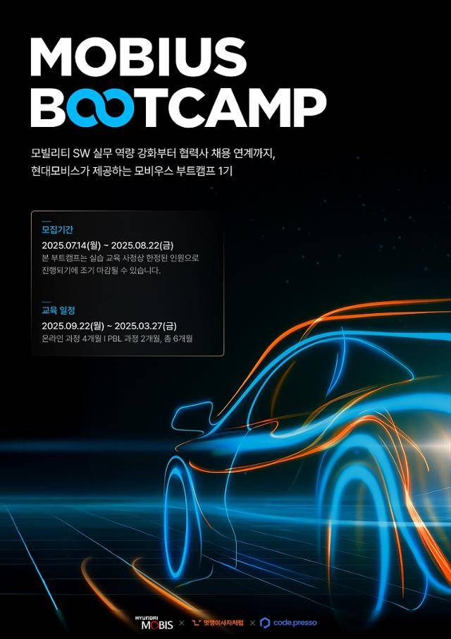 모비우스 부트캠프 참가자 모집은 8월 22일까지 진행되며, 교육은 9월 22일부터 시작할 예정이다. 교육 신청 및 커리큘럼에 대한 자세한 내용은 현대모비스 모비우스 부트캠프 모집 페이지에서 확인할 수 있다.