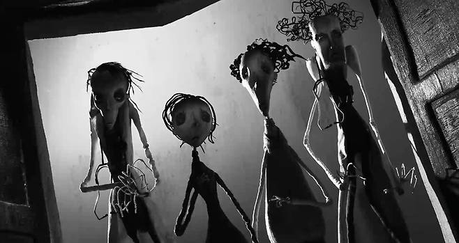 오르테가의 공언대로, <웬즈데이> 시즌2는 여전히 별종들을 위한 학교 '네버모어 아카데미'에서 일어나는 십 대들의 이야기를 다루지만, 그 재현 방식에서 지난 시즌과는 확고한 차이가 나타난다. 부자연스러운 CGI로 구현되던 괴물들은 사실적인 분장과 VFX의 결합으로 한층 더 소름끼치는 외형을 지니게 되었으며, 중간중간 삽입되는 과거 회상 장면의 흑백 화면 사용이나 스톱모션 애니메이션 차용은 완전한 '팀 버튼 스타일'로의 회귀다. 몰개성한 작품이 아무도 모르는 사이에 연달아 공개되는 시대에, 프로듀서 오르테가와 감독 팀 버튼의 강렬한 결합은 반가운 소식이다.