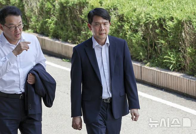 [과천=뉴시스] 조성우 기자 = 성상헌(오른쪽) 법무부 검찰국장이 7일 경기도 과천시 정부과천청사 법무부에 들어서고 있다.