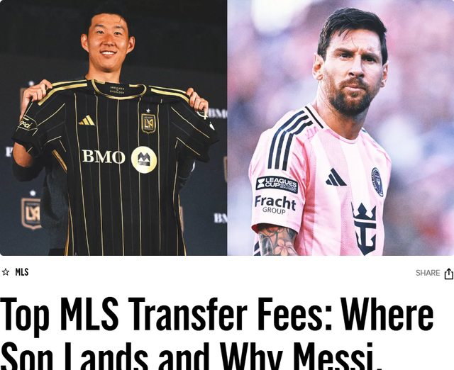 손흥민이 MLS 최고 이적료 기록을 경신하면서 "왜 메시가 가장 비싼 선수가 아닐까?" 하는 의문까지 나오고 있다. 손흥민 이전에도 데이비드 베컴, 즐라탄 이브라히모비치, 메시 등 많은 축구 스타들이 MLS에서 활약했고, 메시를 비롯해 루이스 수아레스, 세르히오 부스케츠, 호르디 알바 등은 현재도 뛰고 있다. 그런데 메시는 왜 MLS 역사상 가장 비싼 선수가 아닐까?