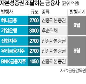 하나금융지주와 기업은행을 비롯한 5개 금융지주사가 자본성증권(신종자본증권 및 후순위채권) 발행에 나섰다.