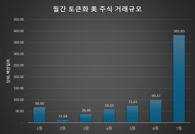 지난 6월 30일 크라켄 등 가상자산 거래소에서 출시된 엑스스톡은 약 38일 만에 원화 기준 2조7710억원의 거래 규모를 기록했다.