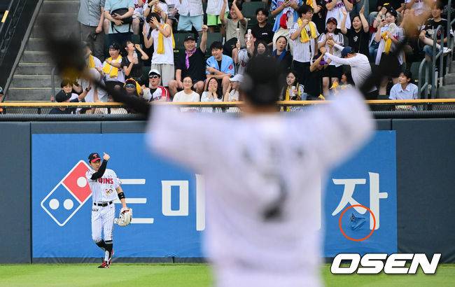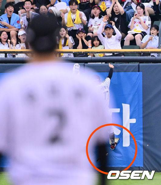 박해민의 수비는 ‘찢었다’라는 표현이 절로 나올 만큼 완벽한 호수비였다. 그런데 경기뿐만 아니라 광고판까지 찢었다. 박해민이 담장을 타고 올라가 공을 잡는 과정에서 담장 광고판이 찢어진 것. ‘찢었다’는 압도적인 실력을 보여주었다는 의미로 쓰이는 신조어다. 말 그대로 경기와 광고판 모두를 찢은 셈이다.