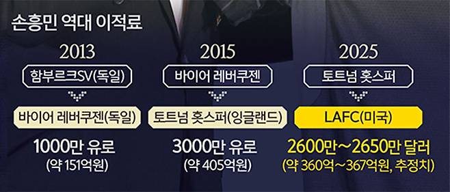 MLS 사무국은 리그 홈페이지를 통해 손흥민의 합류 소식을 전하며 그의 이적료가 최대 2650만달러(약 367억원)로 추산된다고 소개했다. 이는 지난 2월 애틀랜타 유나이티드가 에마뉘엘 라테 라스를 영입하면서 지불한 종전 최고액 2200만달러를 뛰어넘는 리그 최고 이적료 신기록이다. MLS는 손흥민을 ‘아시아와 프리미어리그 역사상 가장 위대한 선수 중 한 명’, ‘토트넘의 레전드’ 등으로 표현하며 예우했다.