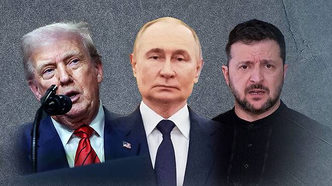 ▲ 도널드 트럼프 미국 대통령과 블라디미르 푸틴 러시아 대통령, 볼로디미르 젤렌스키 우크라이나 대통령