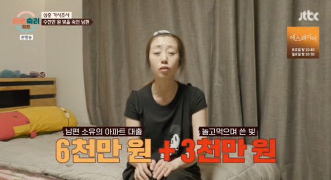하지만 임신 후 아내는 남편의 9천만원 빚을 알게 됐다고 고백했다. 아파트 대출 6천만원과 놀고 먹으며 쓴 빚 3천만원이었다. 남편은 “그때는 미래의 나한테 짐을 넘겼다. 놀면서 돈이 더 필요해서 또 대출을 받았다”며 현재 대출 이자로 최저 7%, 평균 10%, 최고 19%를 내고 있다고 털어놨다.