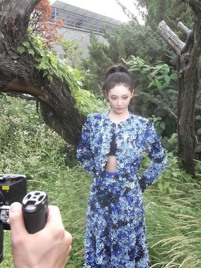 지난 7일 닝닝은 자신의 SNS에 화보 촬영 현장 비하인드 컷을 공개했다.