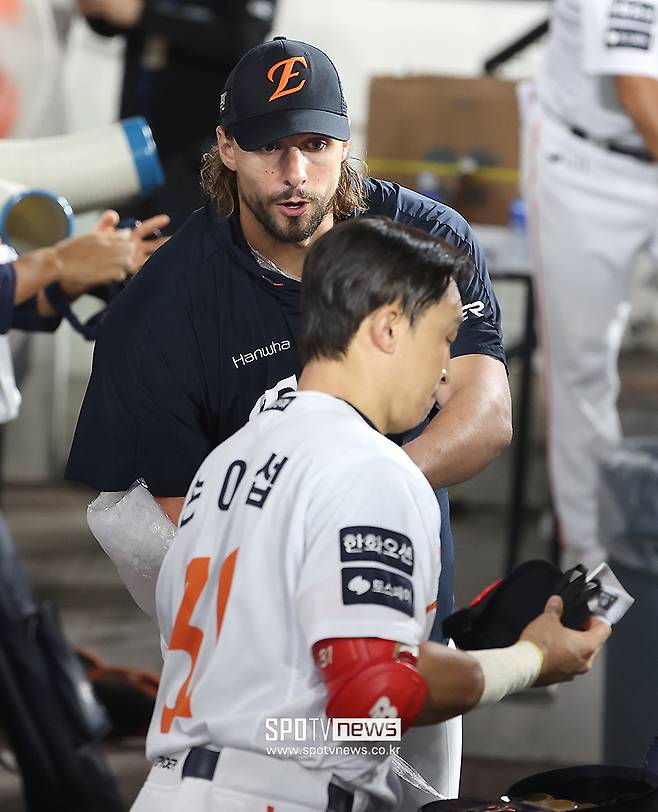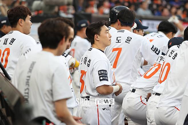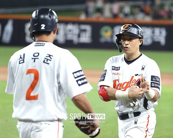 곧바로 심우준과 교체된 손아섭, '한화 동료들의 축하 받으며'