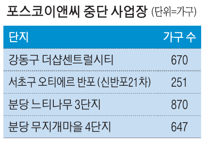 경기 성남시 분당 무지개마을 4단지 리모델링 사업장도 포스코이앤씨가 시공권을 따낸 곳이다. 해당 조합 관계자 역시 “만약 공사가 장기간 중단되면 입주민들은 재산상 큰 손실을 입게 돼 사태를 예의 주시하고 있다”고 분위기를 전했다.