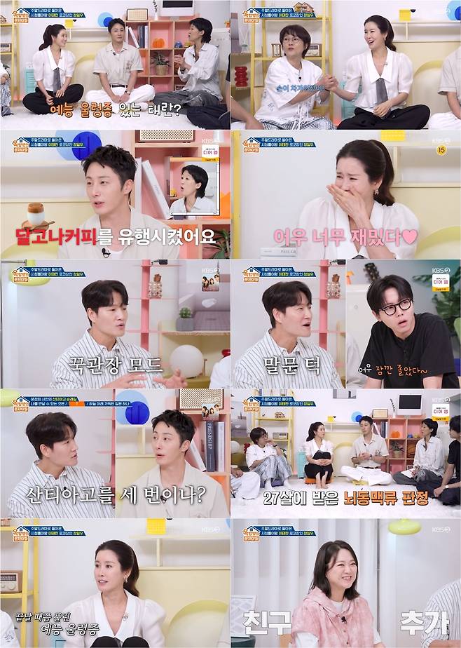 김숙도 동갑인 이태란을 향해 구애를 펼치며 밀착케어에 돌입했다. 김숙은 “연예계에 3대 란이 있잖아. 라미란, 장영란, 이태란 모두 내 친구야”라며 절친 리스트에 이태란의 이름을 올렸다. 이태란은 “동갑내기 연예인 친구가 있으면 좋겠다고 생각했다”며 김숙의 플러팅에 긍정 시그널을 보냈다.