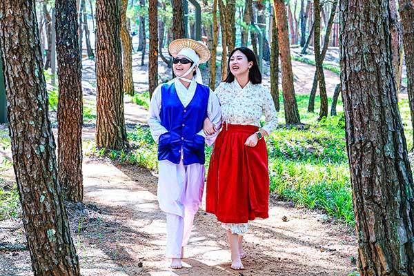울진의 또 다른 명품 걷기 코스는 관동팔경 중 하나인 월송정 일원이다. 울진군은 이곳에 천연 흙길인'울진 명품 맨발걷기'체험코스를 만들어 맨발걷기길, 세족대, 휴게공간, 운동기구 등을 설치했다. 또한 야간 경관 조명 및 CCTV 설치가 되어 밤에도 안전하게 맨발걷기를 할 수 있다. 바다 너머 붉게 물든 노을, 그 아래 소나무 숲을 따라 이어지는 맨발걷기길은 정서적 힐링과 신체적 건강을 동시에 충족시킨다. 무엇보다 인상적인 순간은 해가 저문 뒤 월송정 위에서 내려다보는 전경이다.