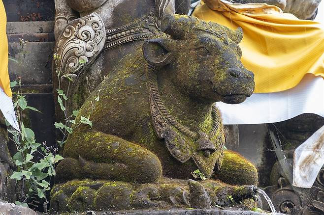 | ▲ 삼주신 중 하나인 시바를 태운 소를 형상화한 석상 발리의 신들은 바하나라고 부르는 운송수단을 가지고 있다. |