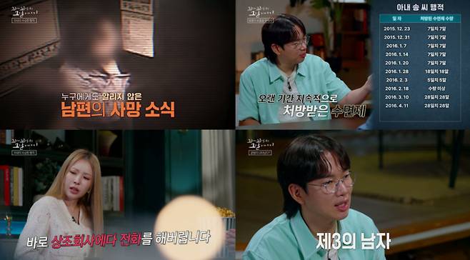 당시 집에는 외부 침입의 흔적이 전혀 없었고, 현장에는 아내 송 씨와 지적 장애를 가진 그녀의 딸만이 있었다. 형사들의 의심이 시작된 것은 송 씨의 상식 밖의 행동 때문이었다. 그녀는 남편의 죽음을 발견하고 경찰이나 119가 아닌 상조 회사에 가장 먼저 연락했다. 이야기 친구들은 시작부터 경악했다. 하동균은 “미쳤네”라며 짧은 탄식을 뱉었고, 산하는 “어떻게 사람이 저럴 수 있나”라며 말을 잇지 못했다.