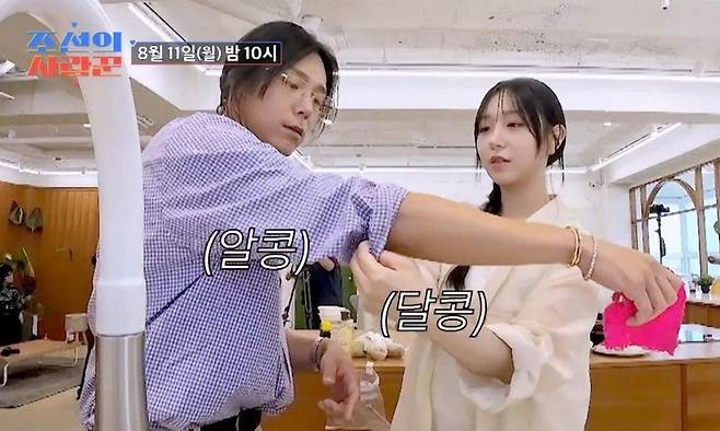 마트에서 집으로 돌아와 설거지를 자처한 김동영은 "소매 좀 걷어줄래?"라며 '소매 플러팅'을 해 설렘을 유발한다. 어설픈 칼질로 MC들의 비명을 유발한 김예은과 다르게 김동영은 능숙하게 감자를 깎는다. 그는 "내가 부모님 주방 보조로 설거지만 20년 했다. 나름 자취 10년 차"라며 매력을 어필한다. 덜 잘린 파프리카를 찢고 있는 김예은의 칼질에도 김동영은 "잘하는데? 원래 칭찬해 줘야 고래도 춤을 춘다"라며 폭풍 칭찬을 한다. 이 모습을 본 황보라는 "콩깍지가 잔뜩 씌었다"라며 혀를 내둘러 웃음을 자아낸다. 과연 김학래·임미숙의 '예비 며느리'가 선보일 요리는 무엇일지 관심이 집중된다.