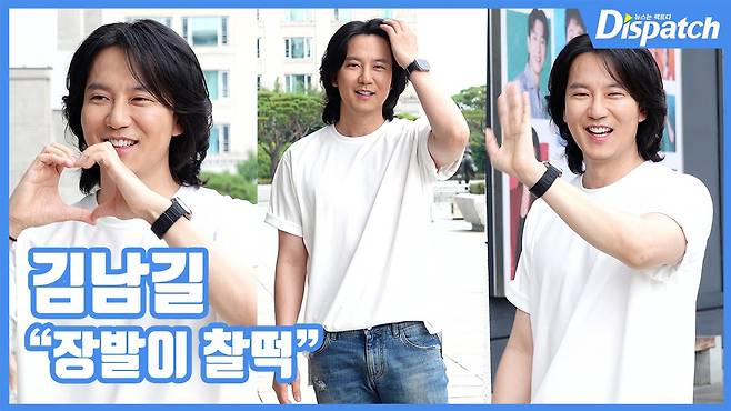 이날 김남길은 흰 티셔츠와 청바지를 매치하며 더욱 훈훈한 매력을 뽐냈다.