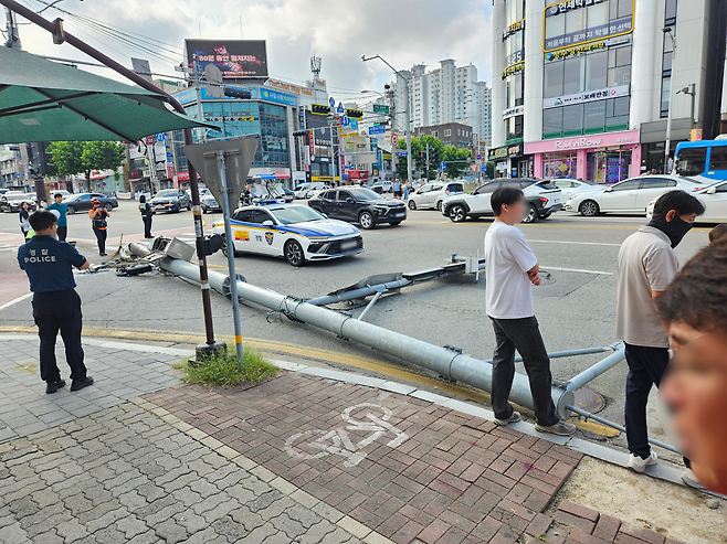 청주 사창사거리서 통근버스가 단속카메라 설치대 추돌...7명 경상
