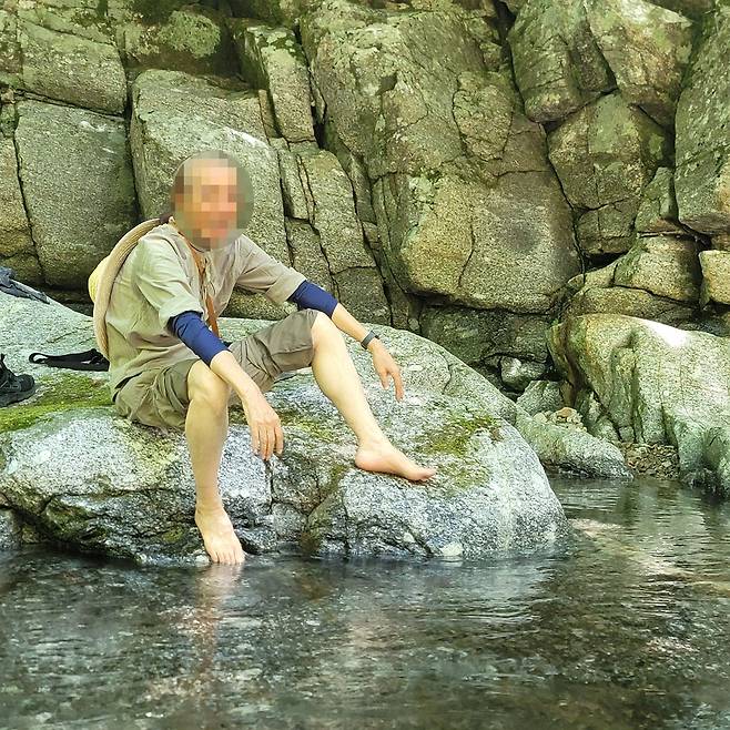 | ▲ 계곡 피서 물에 발을 담그고 더위를 피하는 모습. 발끝만 살짝 담가도 온몸이 시원하다. 탁족. |